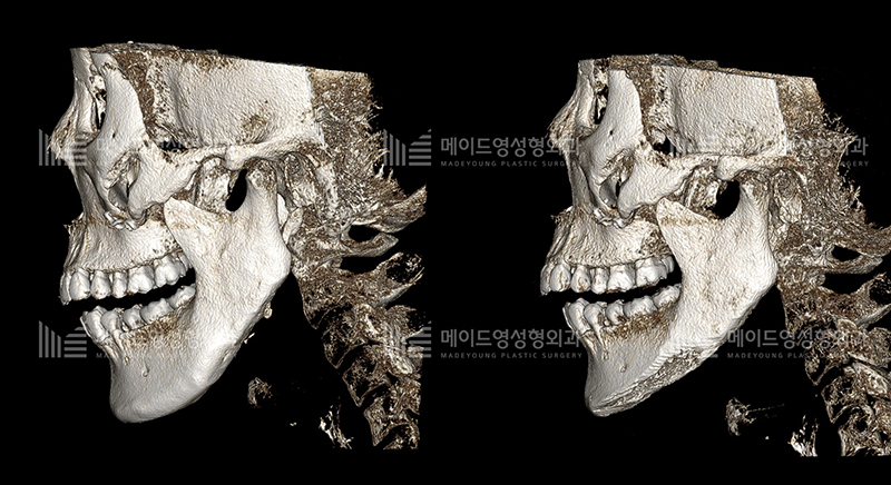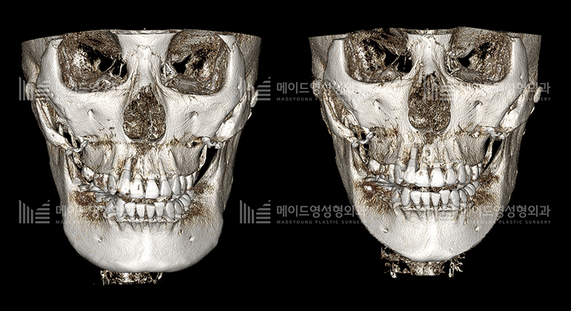 이분 역시 완전분리 후 고정형 광대축소술을 시행함에 있어서 고정이 단단히 이루어 지지 않은 경우 입니다.