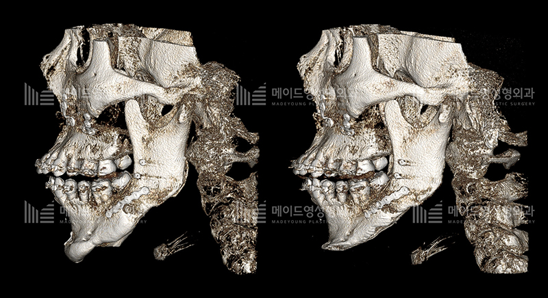 메이드영에서는 환자분 개개인에 맞는 디자인으로 절골함 으로서 2차각없이 충분한 길이축소와 폭의 축소가 가능합니다.