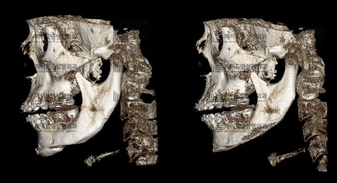 턱끝을 전진하여야 할 경우에는 당연히 절골술을 선택하는 것이 맞지만, 갸름해지거나 턱끝의 길이를 줄이는 방법에서 우선적으로 메탈프리 방식을 일차적으로 선택하는 이유는