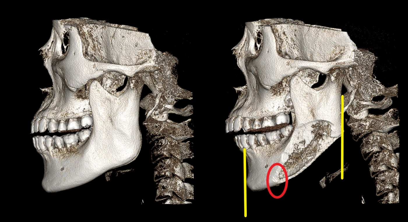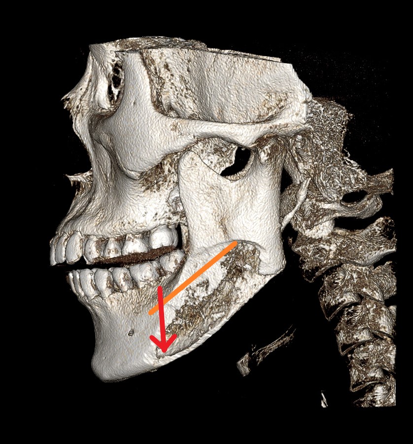 그렇지만 정면효과 특히 정면에서 보았을 때 턱끝과 턱뒷부분의 중간지점의 폭이 줄어야 할 분들에게는 사선절제 사각턱 수술이 적합합니다.