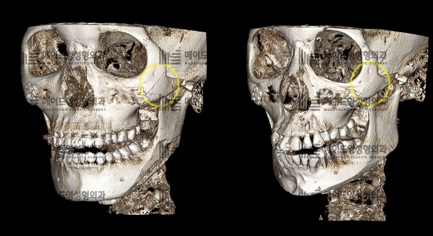 저는 모든 안면윤곽수술에서도 마찬가지지만 초밀착광대축소술 후 씨티를 촬영하여 절단면의 밀착을 눈으로 확인시켜드립니다.